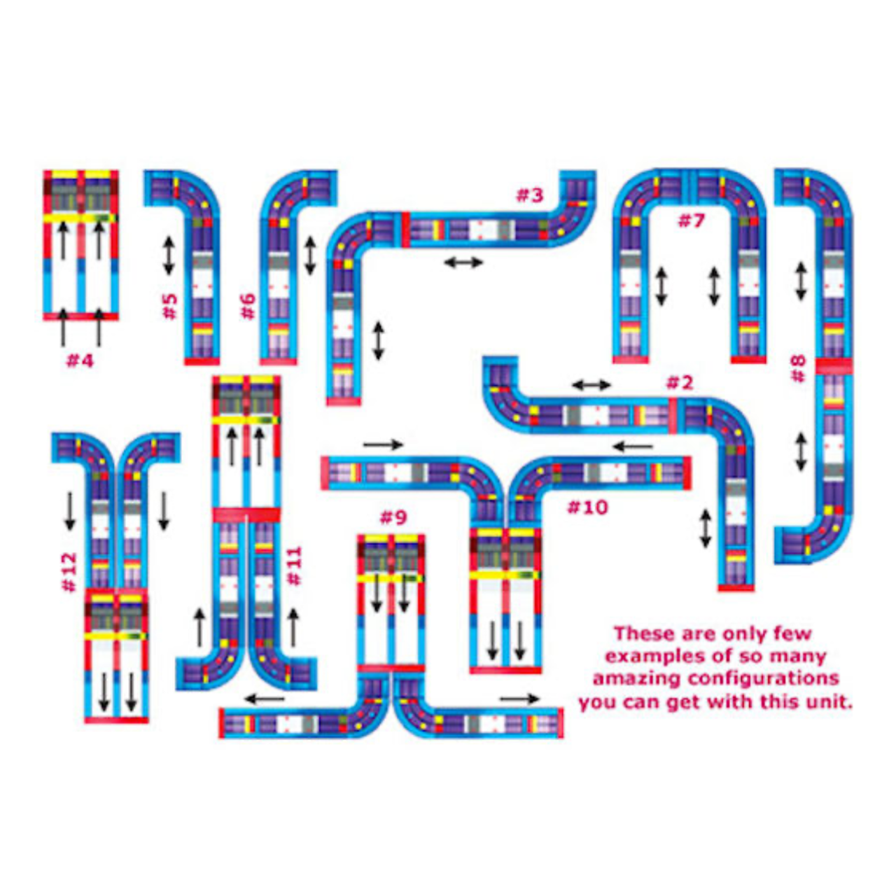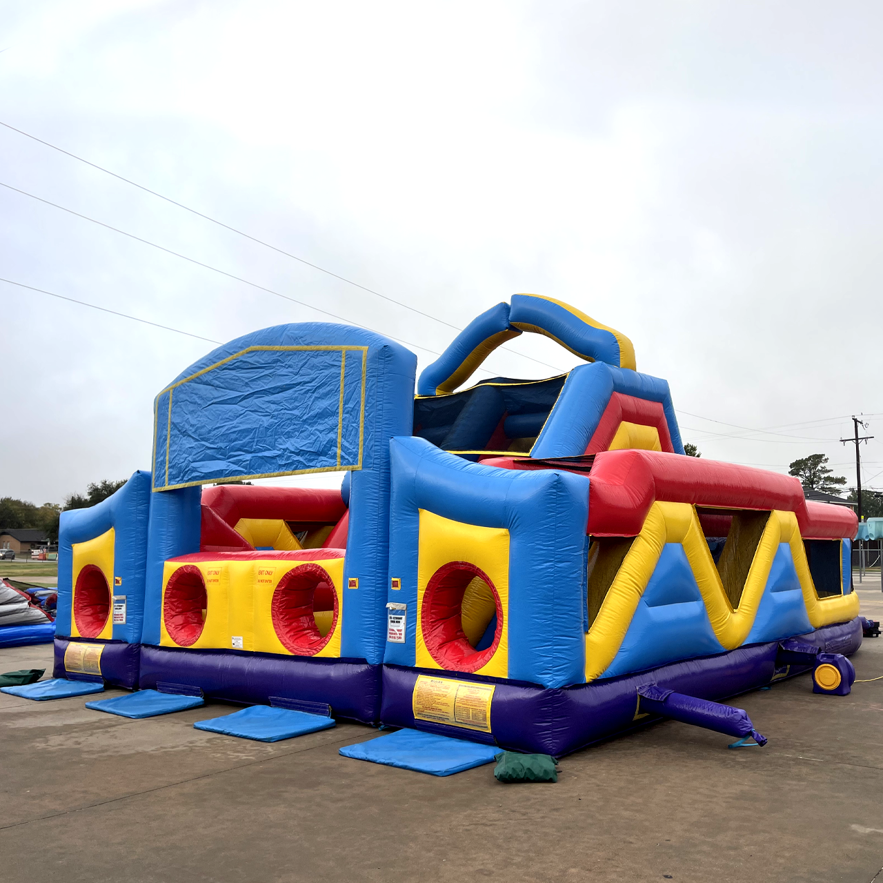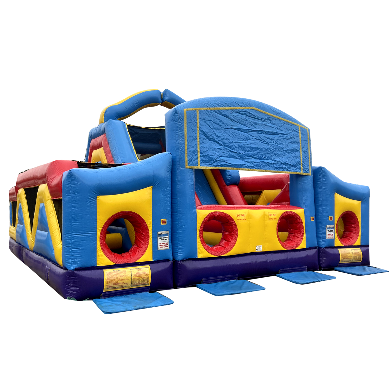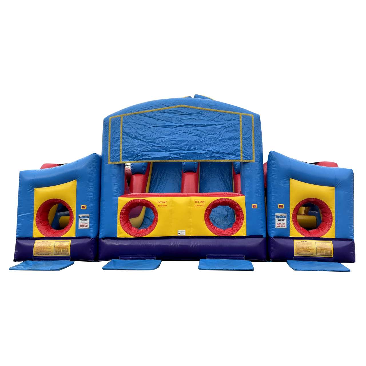 The Ultimate Module Challenge brings everything you love in an inflatable attraction together in one brilliant design! The 3 pieces include (1) double lane slide with climb challenge steps and tunnel exits and (2) L-shaped obstacle alleys that include a variety of pop-up, pop-out, log features, rock climb and slide. Each piece can stand alone or be combined to create literally hundreds of obstacle designs! Arches conveniently tuck into the unit itself, Height without Top Arches 14'10".